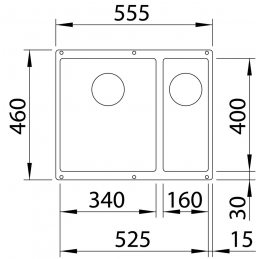 Das kleinere Becken ist ideal zum Abspülen von Obst und Gemüse, zum Abgießen von Nudeln oder für den separaten Umgang mit Geschirr. Die Gesamtmaße des Beckens betragen 555 × 460 mm.