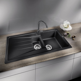 Erhöhen Sie den Komfort in Ihrer Küche mit dem Modell Blanco Sona 6 S. Dieses moderne 1,5-Becken Granitspülbecken ist für Unterschränke mit einer Breite ab 60 cm konzipiert und bietet das ideale Gleichgewicht zwischen Hauptbecken, Zusatzbecken und praktischer Abtropffläche.