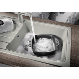 Dank der Beckenbreite von 480 mm können Sie darin problemlos Backbleche, große Töpfe oder Pfannen spülen, während die praktische Abtropffläche ausreichend Platz zum Trocknen des Geschirrs bietet.