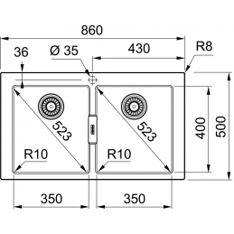 • Bohrung für Mischer: 1 × Ø 35 mm