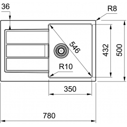 Außenmaß der Spüle: 780 × 500 mm