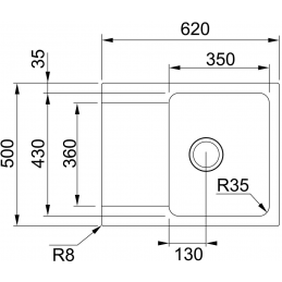 Außenmaß des Spülbeckens: 620 × 500 mm