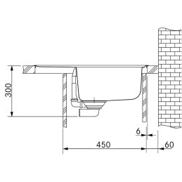 Ausschnitt für Arbeitsplatte: 600 × 480 mm