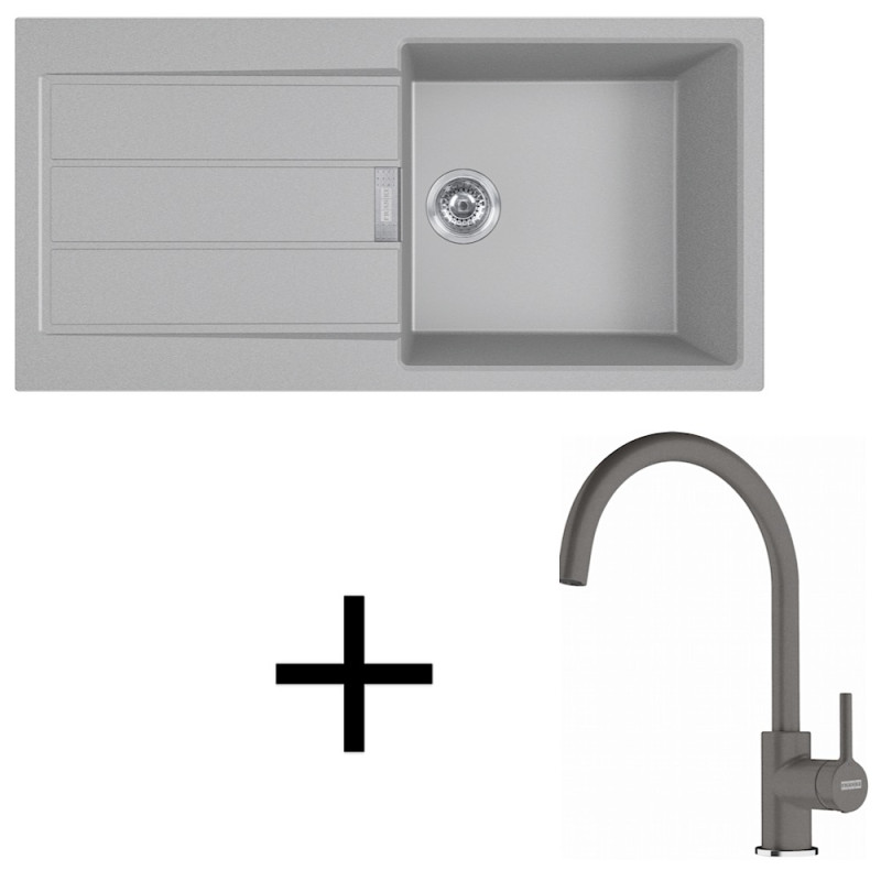 Die Kombination aus geräumigem Tectonit-Spülbecken und leistungsstarker Mischarmatur bietet Komfort, Widerstandsfähigkeit und modernes Aussehen, das perfekt in jede Küche passt.