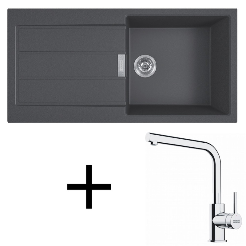 Set T117 Tectonit-Spüle Franke S2D 611-100 + Armatur FS 3230 / Schwarz