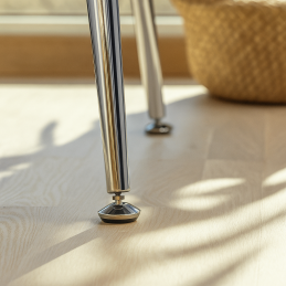Das Bein verfügt zudem über eine feine Höhenverstellung von +5 mm, ideal zum Ausgleich unebener Böden.