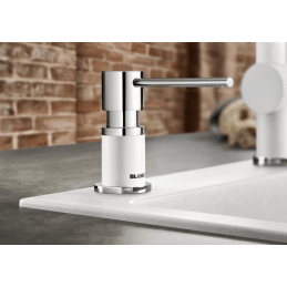 Seifenspender. Die Dosierung erfolgt von oben. Das Fassungsvermögen des gesamten Behälters beträgt 300 ml. Verschiedene Farbvarianten.
