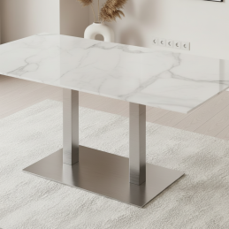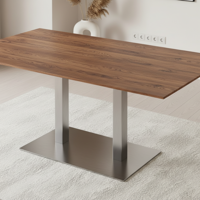 Das zentrale Tischgestell URBAN in elegantem Edelstahl-Design verleiht dem Tisch ein modernes und professionelles Aussehen. Dank der stabilen und massiven Konstruktion bietet es hervorragende Stabilität und ist sowohl für den Einsatz in Haushalten, Büros als auch in der Gastronomie geeignet. Es ist in zwei Höhen erhältlich – 730 mm für klassisches Sitzen...