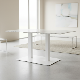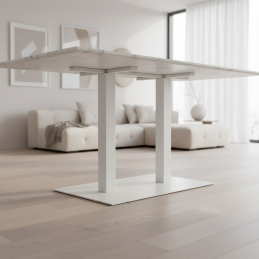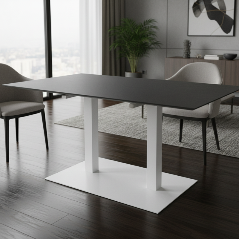 Massives zentrales Tischbein aus Metall, ideal für Ess- und Bürotische. Dank seiner robusten Konstruktion und seines hohen Gewichts bietet es auch bei größeren Tischplatten eine hervorragende Stabilität und Tragfähigkeit.