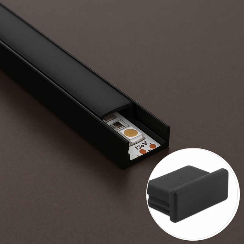 Sie dient dem ästhetischen und präzisen Abschluss des LED-Profils, sorgt für ein professionelles Erscheinungsbild der Beleuchtung und schützt die inneren Teile des Profils vor Staub und mechanischer Beschädigung.