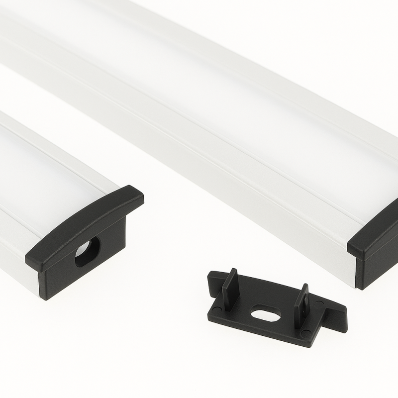 Dient zur ästhetischen und funktionalen Abschluss des LED-Profils – schützt die Kanten, verhindert das Eindringen von Staub und ermöglicht gleichzeitig eine einfache Durchführung des Stromkabels.