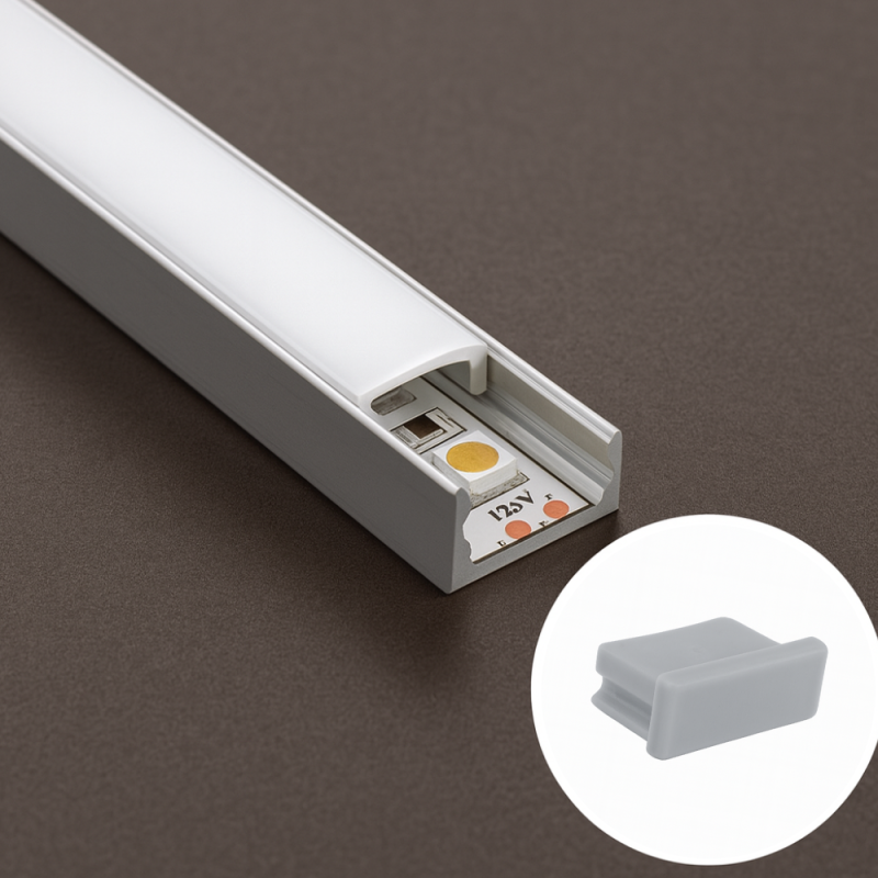 Sie dient dem ästhetischen und präzisen Abschluss des LED-Profils, sorgt für ein professionelles Erscheinungsbild der Beleuchtung und schützt die inneren Teile des Profils vor Staub und mechanischer Beschädigung.