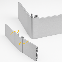 Flexible Verbindung für Küchen-Sockelleiste PAX im Dekor Edelstahl gebürstet ist eine praktische Lösung für das Verbinden von Sockelleisten in verschiedenen Winkeln im Bereich von 90° bis 270°.