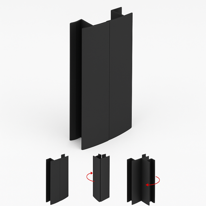 Flexible Sockelverbindung für Küchensockel PAX im Farbton schwarz matt RAL 9005 ist die ideale Lösung zum Verbinden von Sockeln in verschiedenen Winkeln im Bereich von 90° bis 270°.